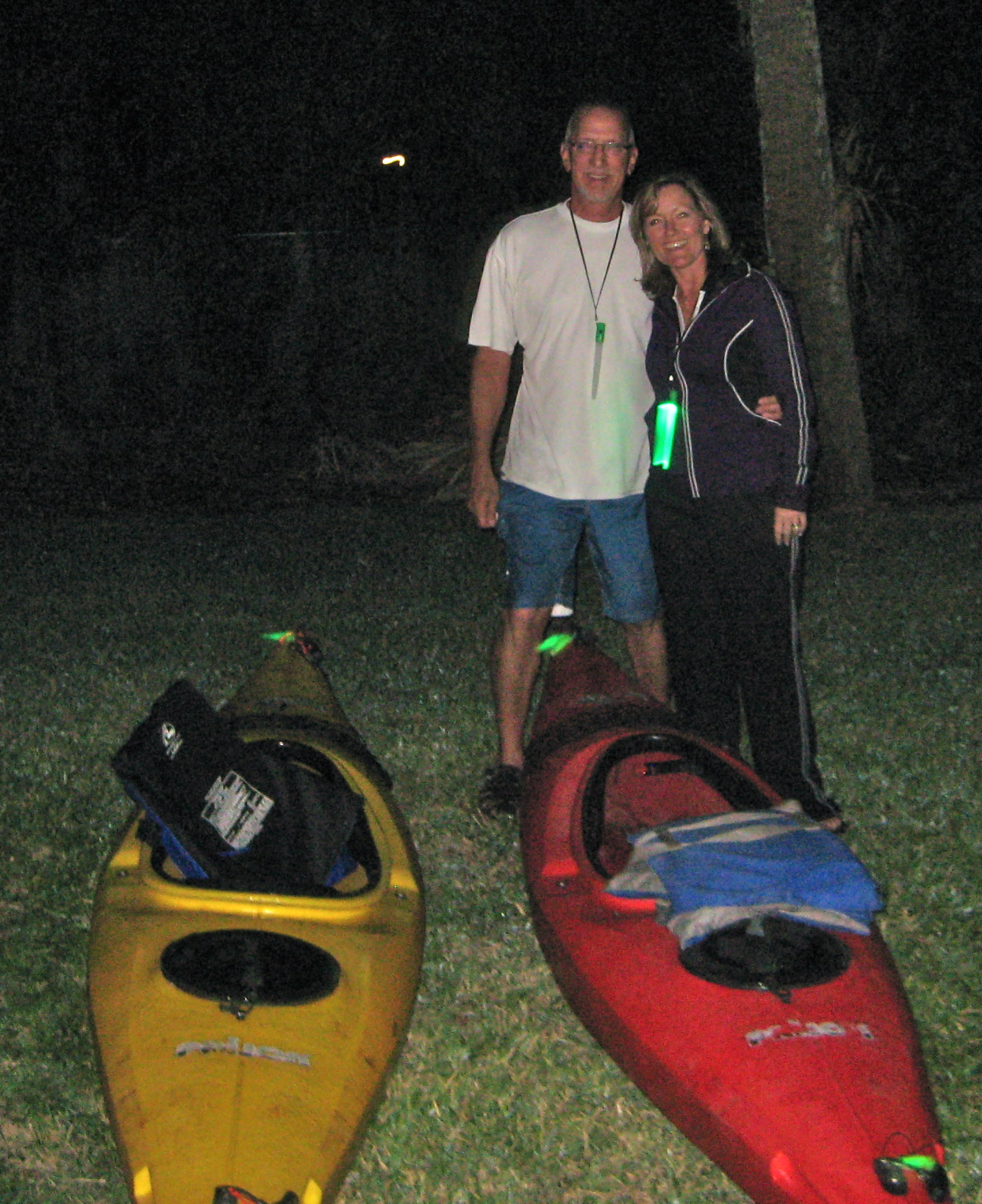 We arrived at Fort Maitland at 7p. to discover about 24 people also cashing in on the Groupon deal. There was one couple we met who were celebrating their 25th anniversary. They shared how they had also used a Groupon deal to go to dinner before the kayak excursion. If you live in a larger city, check Groupon out to see if it’s available in your market. Lots of great deals.