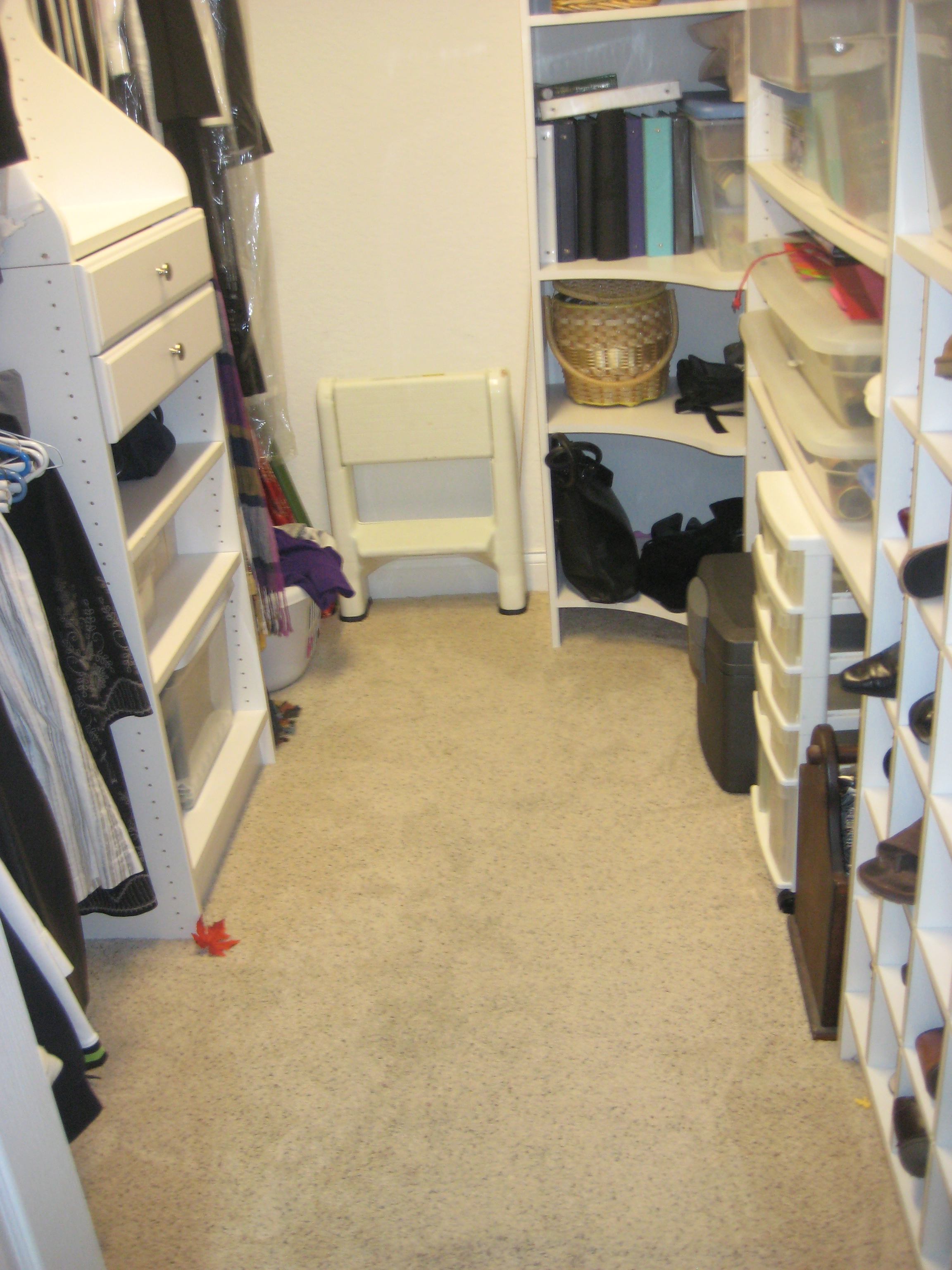 I love your closet and even though mine is pretty large, it doesn’t have quite the nice organizers yours has! If I had those organizers, I’d most definitely keep mine neater. It looks great now though; keep up the good work and you’ll be able to find things more quickly now, I’ll bet!!