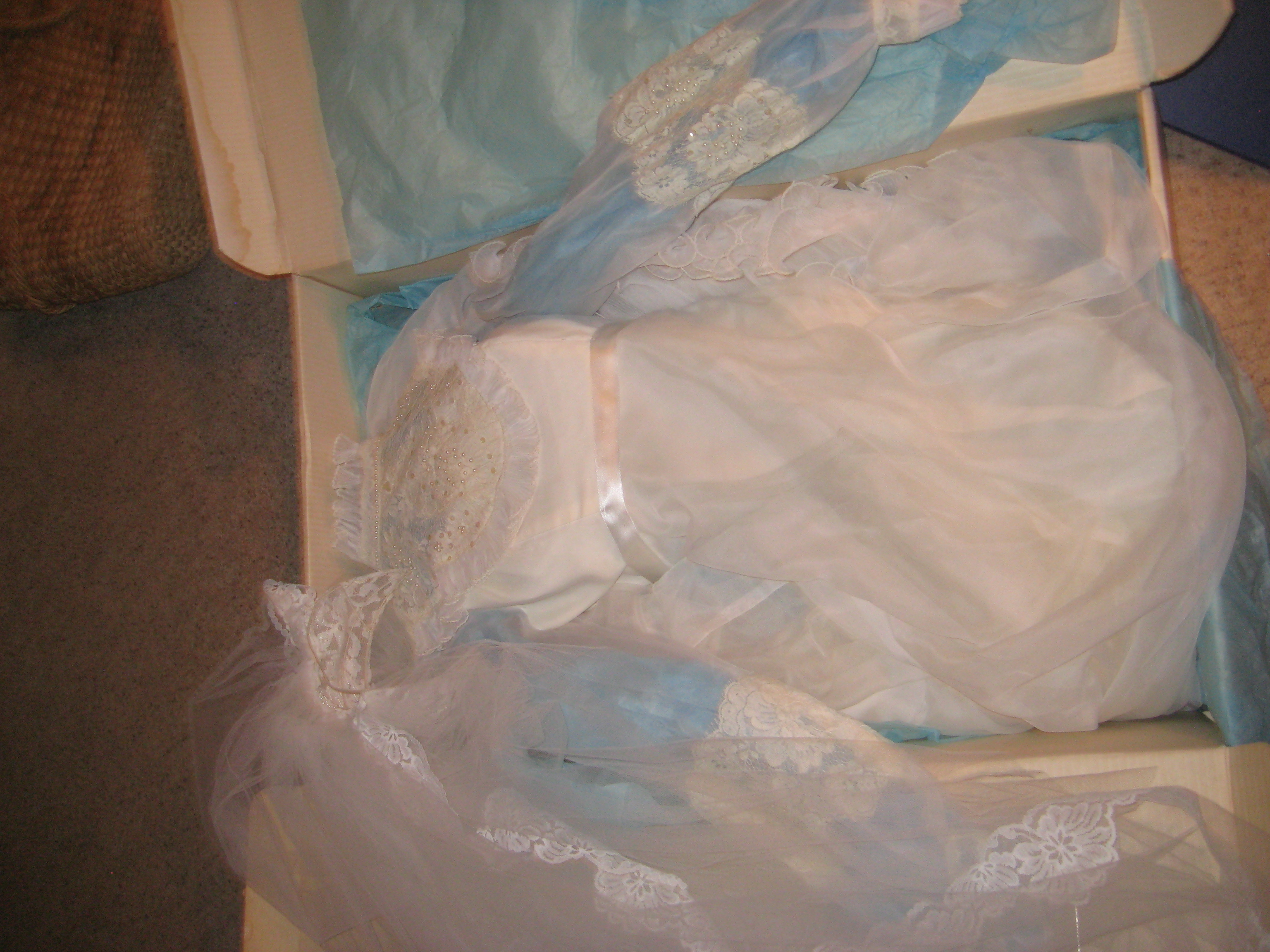 My suggestion on the wedding dress KEEP IT~ My own hand made dress by my grandmother is in the closet in a box wrapped in tissue paper and it is not leaving ever. It is a precious reminder of how far we have come as a couple.