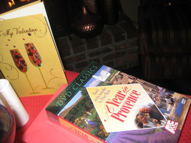 Ours was an at-home celebration too. I recently discovered a couple of different cook-books for romantic meals that use “aphrodisiac” ingredients and used them as a jumping off point to make Boullibasse which is pretty much a one dish meal and a no bake chocolate creme pie. Our evening was interrupted by a last minute b-day party for our nephew and the need to pick up the kids from basketball practice but we aren’t a couple who puts too much emphasis on the day as THE most romantic day of the year anyway. So we ate, we opened a special bottle of wine, we relaxed on the couch together and read and when it was time for bed I unveiled something very tiny to see if those aphrodisiac ingredients were what they had been claimed to be. 😉
