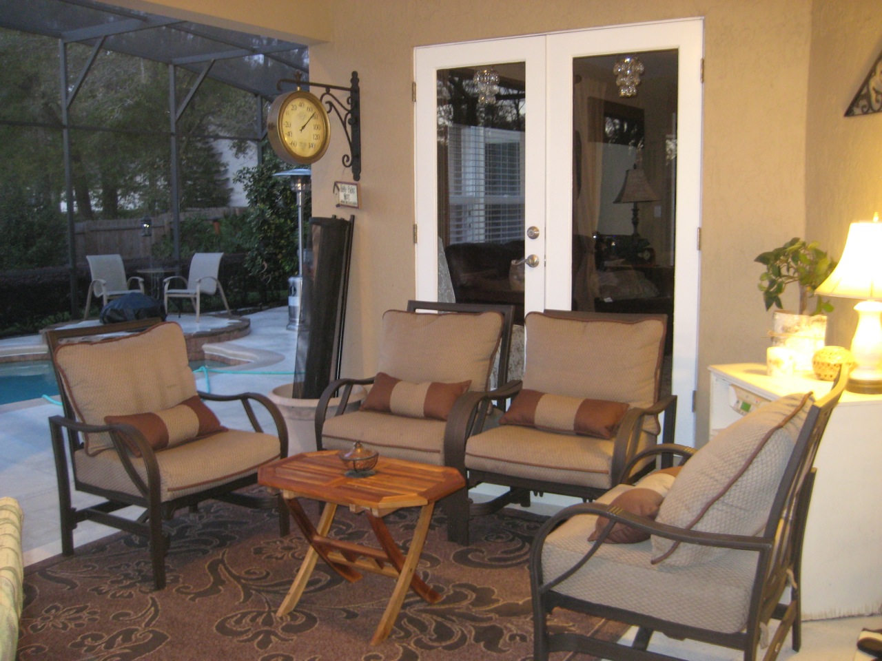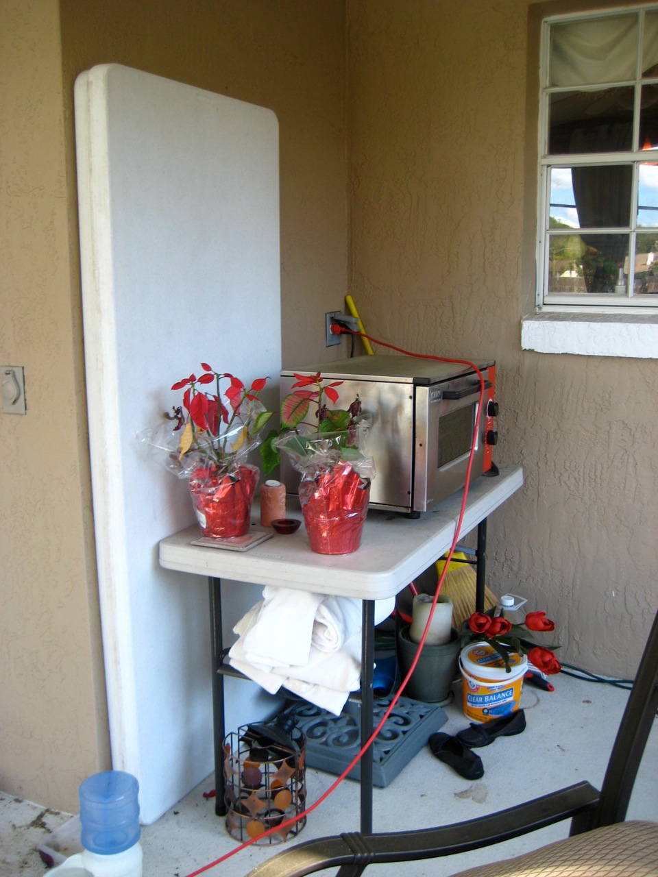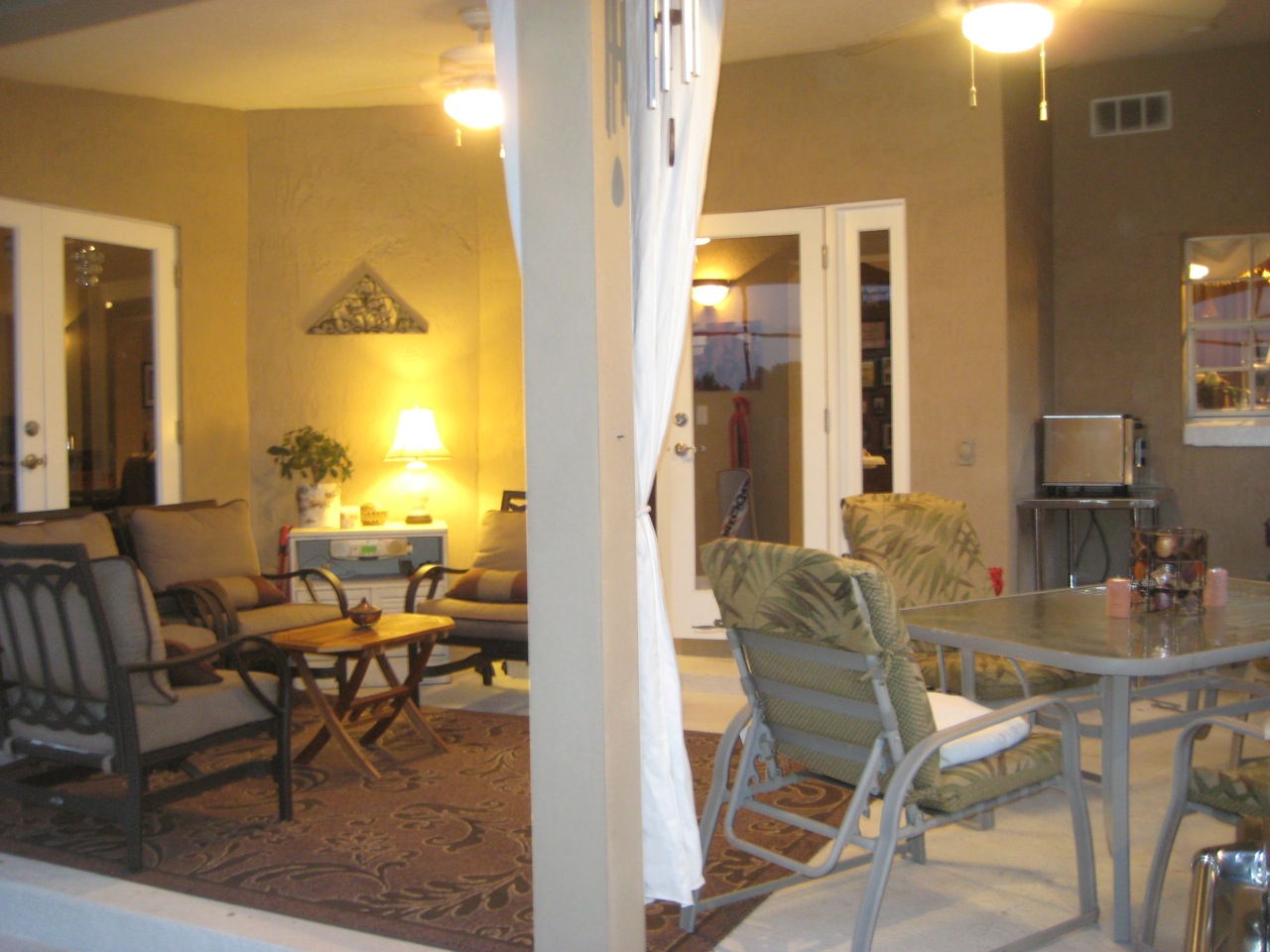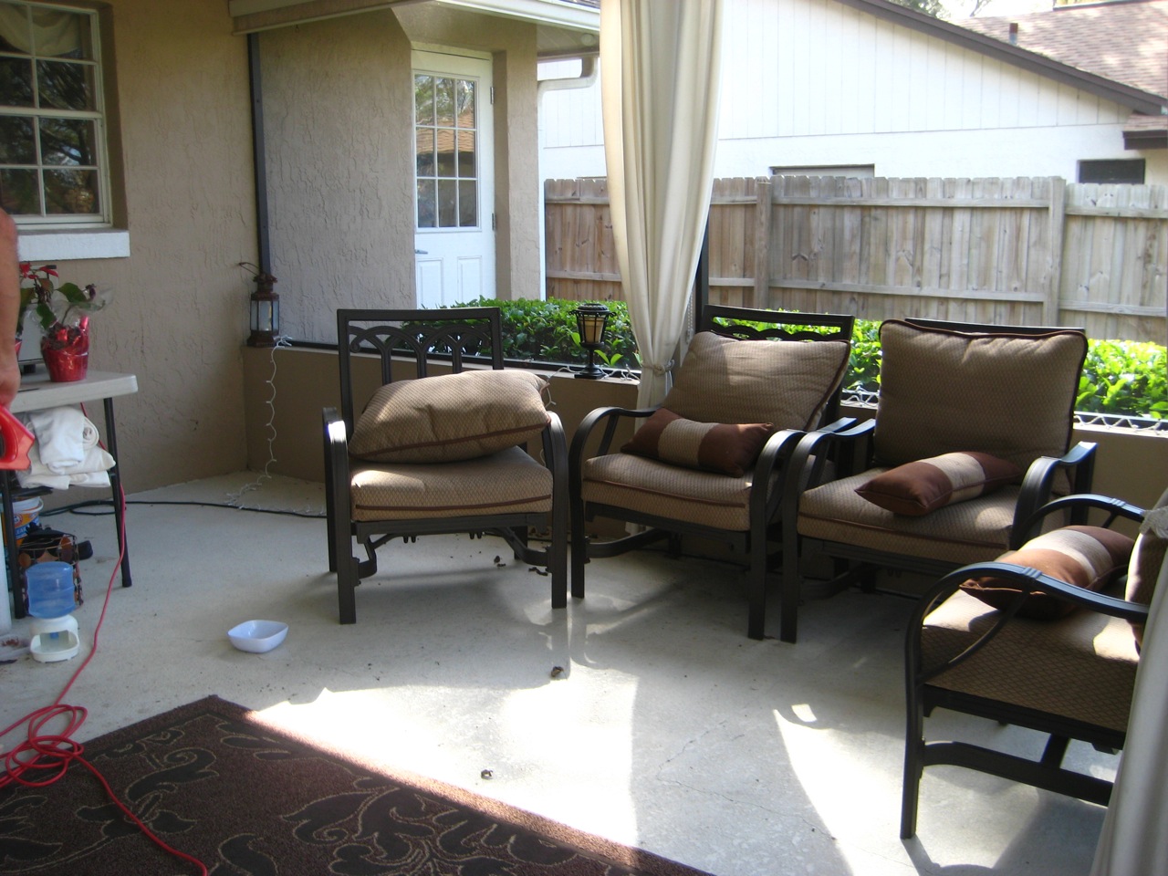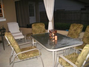 This past weekend, Tom and I spent four solid hours cleaning our back porch and pruning our overgrown rose bushes. It felt good to accomplish something with such incredible results. I was amazed at how we were able to relax and enjoy an evening at home together with such a project completed. And we had fun doing it. Here are our before and after pics: