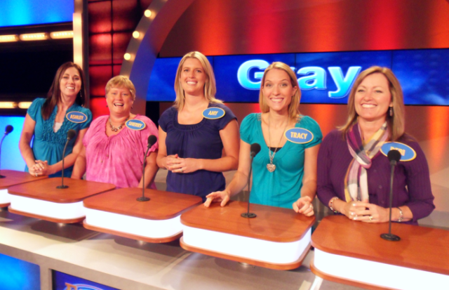 Note: We are playing as The Gray Family (my maiden name). The rest of our team is my daughter – Tracy, my niece – Amy, my sister-in-law – Sherry, and my daughter-in-law – Ashley. Our other daughter, Heather, taped our Family Hometown Moment.