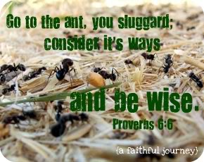 Go to the ant, O sluggard; consider her ways, and be wise. Without having any chief, officer, or ruler, she prepares her bread in summer and gathers her food in harvest.