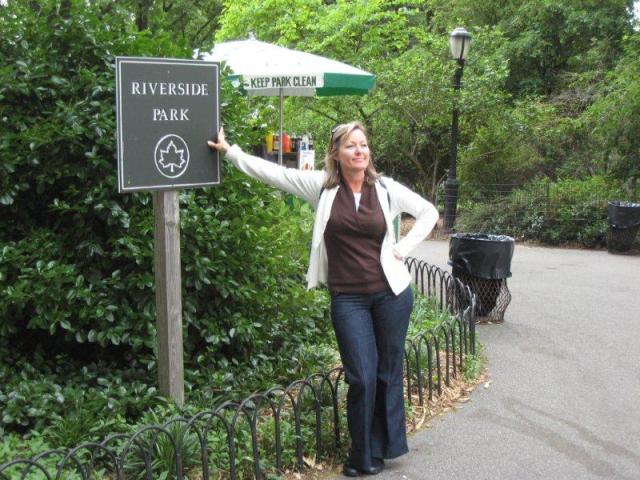 This took place over four years ago, but we remember it as if it were yesterday. Below is a picture of a recent trip we took to New York City. Debi insisted we go to the Upper West Side of Manhattan in order to see all of the You’ve Got Mail sites. Do you know where this park is shown in the movie? (If you don’t, ask Debi – she’s sure to know!) I find it ironic she’s sandwiched between a “keep park clean” sign and a garbage can.
