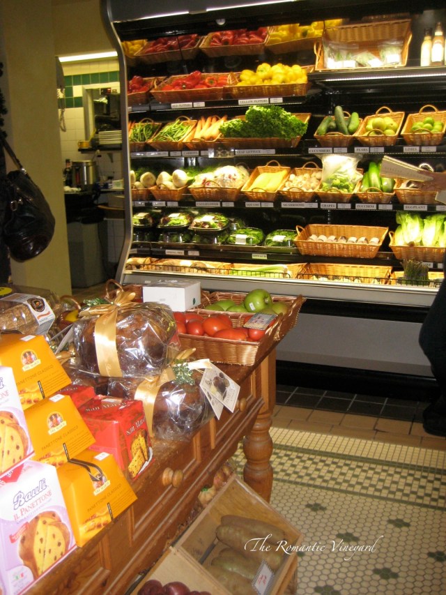 The deli also contains shelves of condiments, olives, exotic vinegars, sauces, pastas and olive oils. The list could go on and on. Really. It is a fun place to browse and relax. But you won’t want to skip the food offered on the menu either.