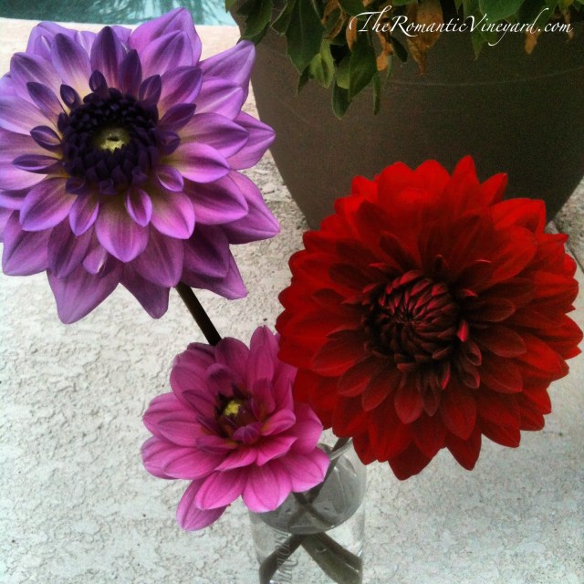 I love flowers of all kinds, but dahlias have a special place in my heart. Each year I anticipate what this year’s plants will look like. On Sunday morning I looked out our bedroom window and noticed a special surprise–three dahlias had opened over night, one each from separate plants. I have three children, each unique in the joy they bring to our family, so to see these three flowers each beautiful but different, was like God saying,