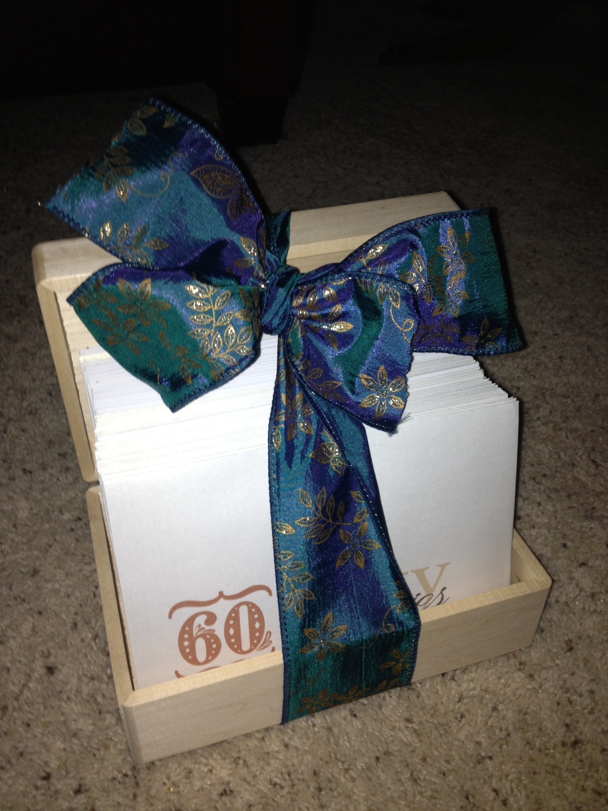 Afterwards we went to a 60’s type diner for breakfast where I gave him the box of 60 memories. He started to read them one by one, and was so affected by the memories and the kind words shared that it took him all day to get through them.