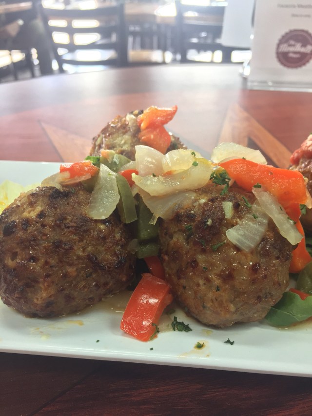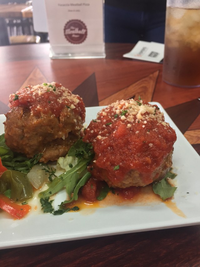 We ordered the Meatball Flight of 5 meatballs, a side, focaccia bread, drink and cannoli to share at $19.95. You can choose 5 different meatballs if you wish, or any combination of your favorites. We picked three sausage, peppers and onions, and two traditional. They were fabulous! The texture was firm, but not dry. Seasoned well and hot out of the pot. We ate slowly to enjoy every bite!