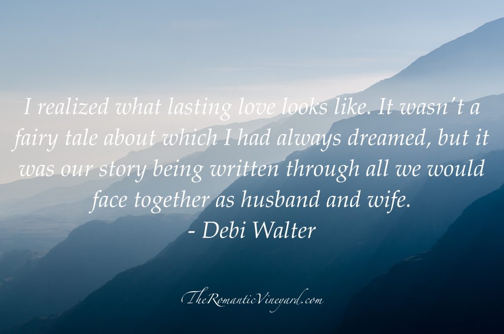 I realized then what lasting love looks like. It wasn’t a fairy tale about which I had always dreamed, but it was our story being written through all we would face together as husband and wife.