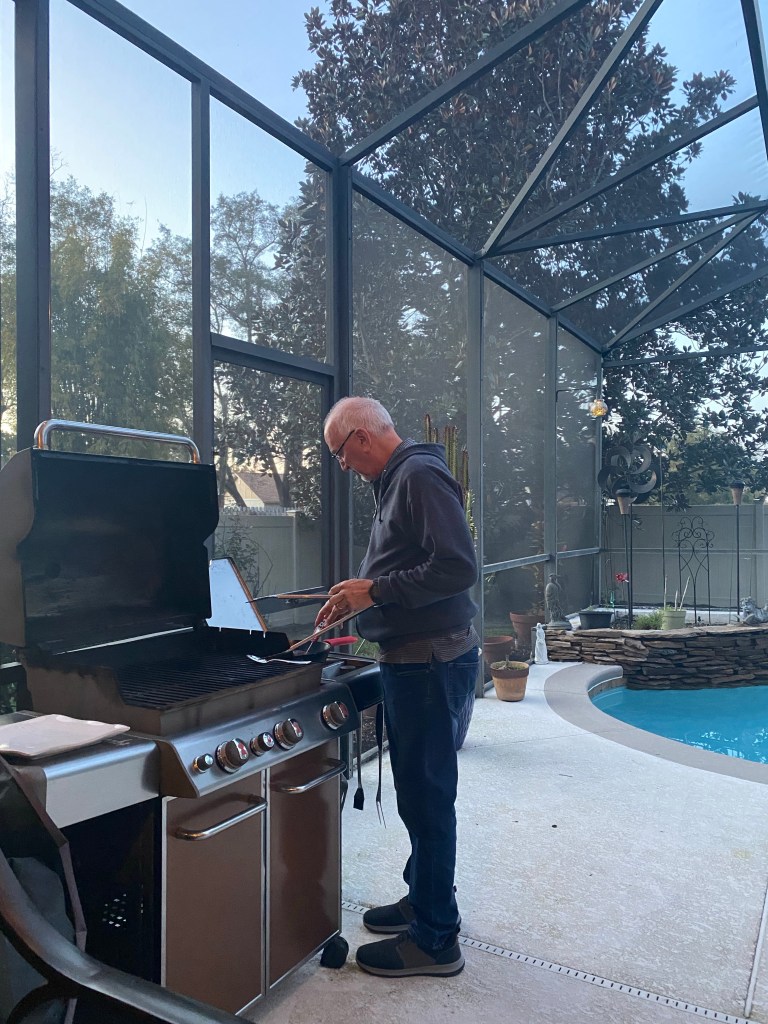 Tonight we celebrate being home together, enjoying a meal hot off the grill. It’s the little routines that bring comfort; more than the elaborate dates planned.