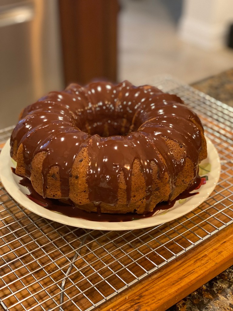 Confession though—this is my first time baking this cake with a silky smooth ganache. I have never made ganache, pronounced “guh-nosh”, but it might be my new favorite chocolate creation. And Tom had a slice of this cake for breakfast which is always a good sign. After all, a Bundt cake is just a giant donut, right?