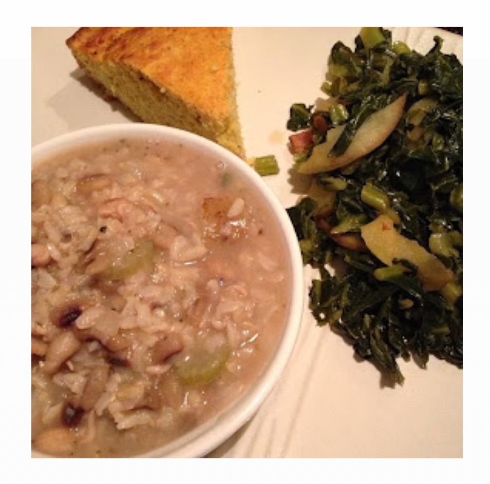 Hoppin’ John, Collard Greens and cornbread
