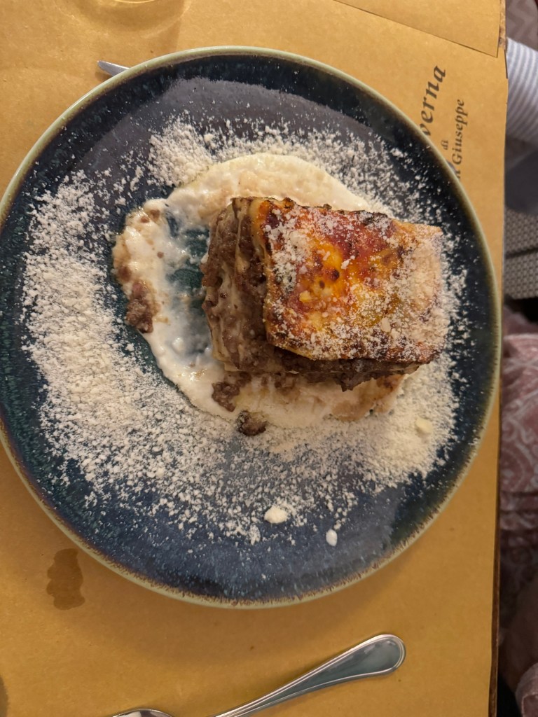 Our friends ordered the lasagna, which is nothing like our America version. It was layers of pasta, meat and cheese but no sauce (or gravy as they call it). They said it was the best they’ve ever had!