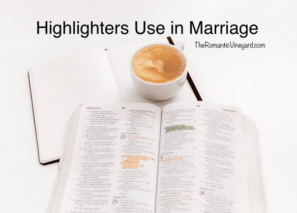 Highlighters are also used to remember something we love in a book. How important to make much of those things we love about our spouse. Quips we can easily recite to ourselves when we are tempted to highlight the negative.