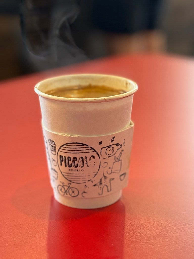 Tom and I usually enjoy eating breakfast at the market, but sadly our favorite food stand wasn’t there this week. What I didn’t know is that Tom had arranged for us to meet dear friends for breakfast at a new coffee shop just a few blocks away.