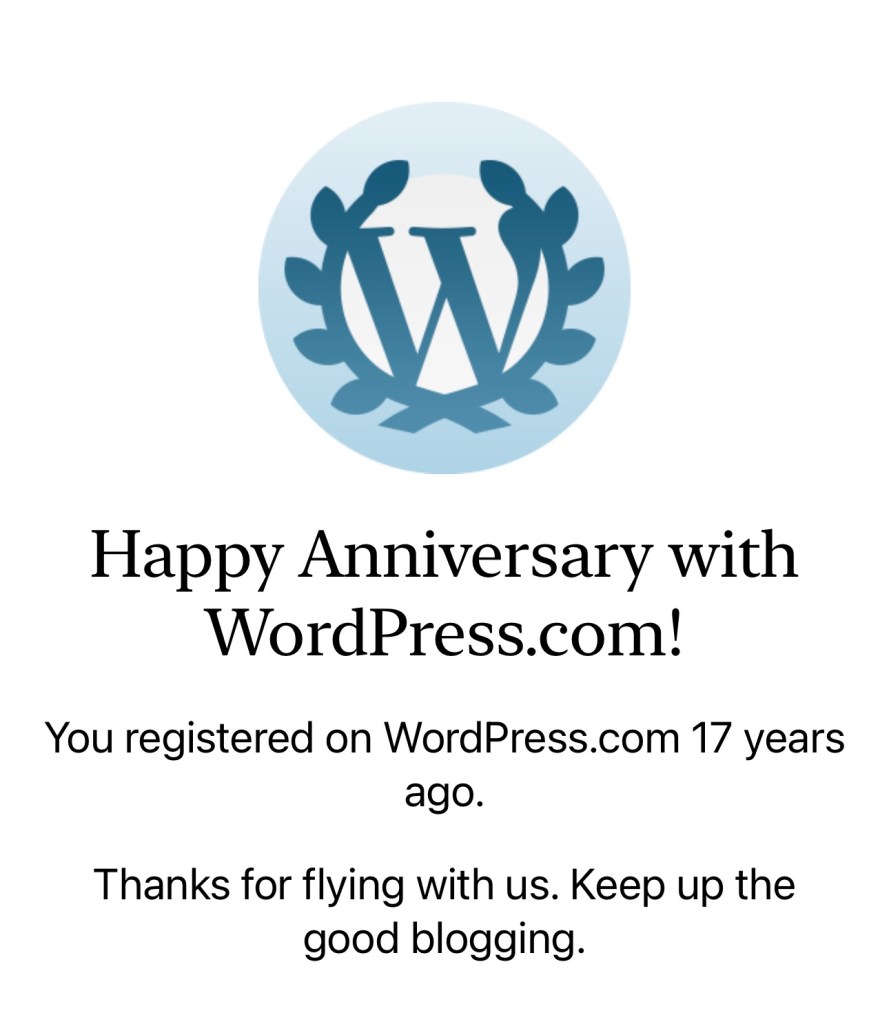 We received a congratulations from WordPress this week. It was 17 years ago that we signed up to begin The Romantic Vineyard.
