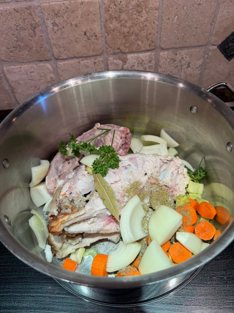 Turkey carcass is only good for 5 days if kept refrigerated. Thankfully Tom and I managed to remember we wanted to try this recipe on day five.