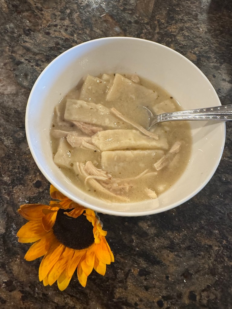 I was on the phone with my daughter in GA and asked her what she was cooking for dinner. She immediately replied, “Chicken and Dumplings!” This was no surprise as it was her favorite meal as a kid.