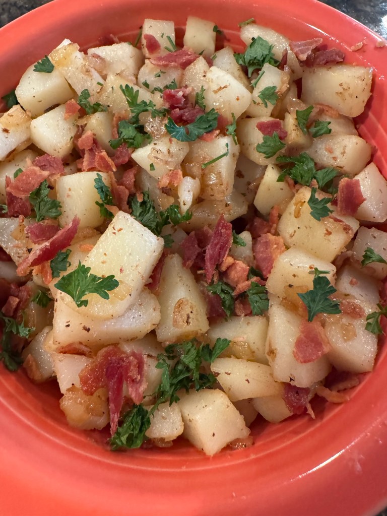 For the potato salad, I found it on the All Recipes website. It was delicious served warm.