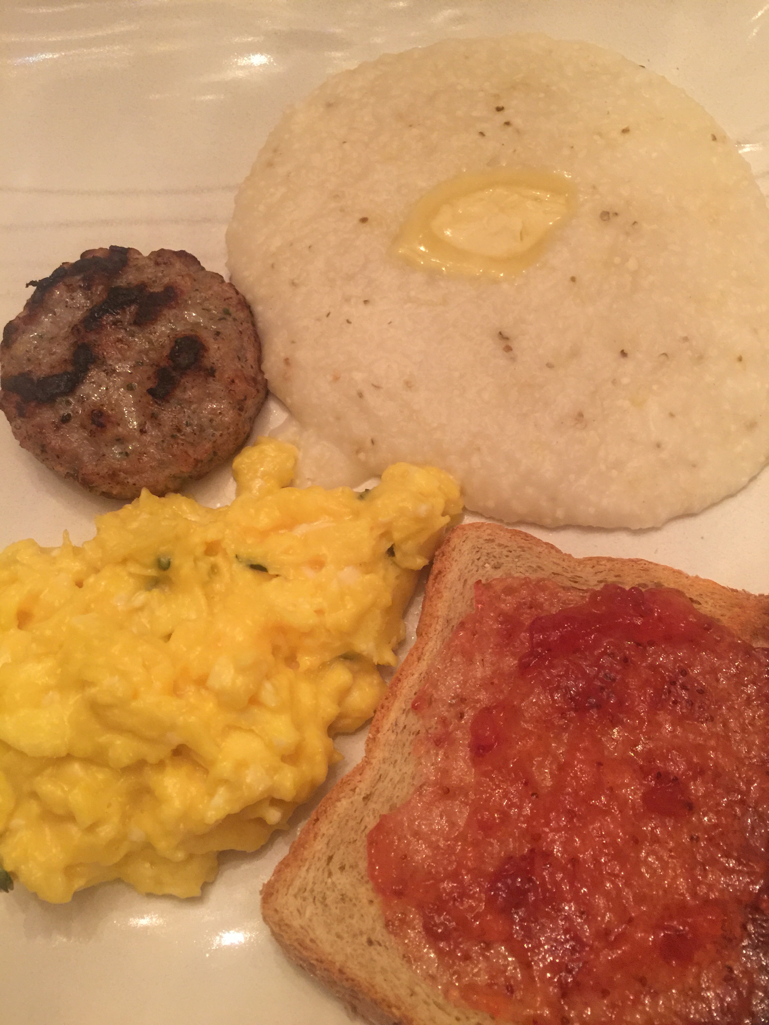From there we came home to enjoy 007’s favorite fOOd: Scrambled eggs, sausage and toast with jam. (Who knew?)