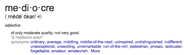 MEDIOCRE. Just the sound of it is blah, don’t you think? I looked up the definition and found this interesting…
